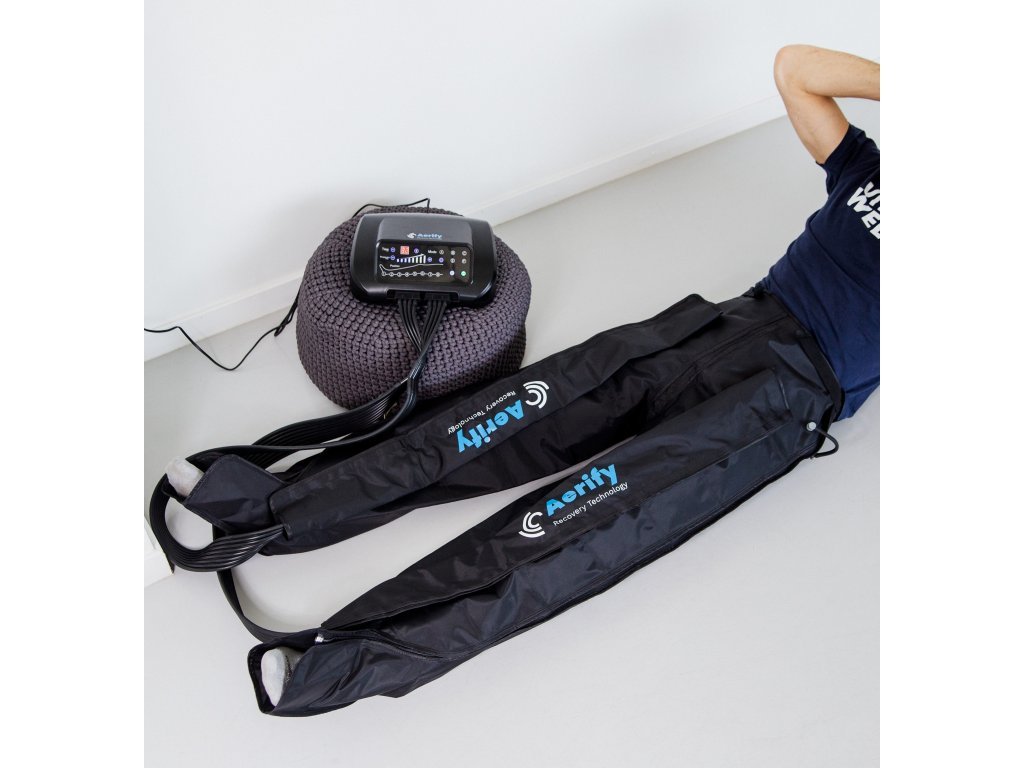 Kompresné nohavice Aerify Standard pomáhajú nielen športovcom odvádzať laktát, kyseliny a ďalšie odpadové látky zo svalov, čím podporujú lepšiu cirkuláciu krvi. Zlepšujú tiež žilový obeh a sú vhodné pre osoby trpiace opuchmi alebo so zvýšeným rizikom hlbokej žilovej trombózy. Regenerácia s Aerify je jednoduchá – oblečte si nohavice, vyberte jeden zo šiestich programov, nastavte čas, intenzitu kompresie a relaxujte.