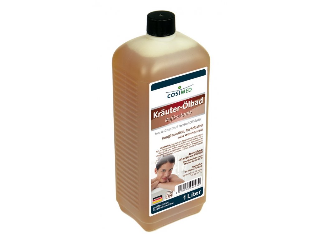 cosiMed kúpeľový olej Pagaštan - 1000 ml je veľmi kvalitný kúpeľový olej pre profesionálne, ale aj domáce použitie. Pri výbere ingrediencií bolo dbané na šetrnosť voči citlivej pokožke a najmä na kvalitu zložiek oleja. Ide o koncentrát obsahujúci vzácne bylinné a ošetrujúce oleje. Olej má tenzidový základ a obsahuje tiež hydratačné zložky. cosiMed kúpeľový olej Pagaštan - 1000 ml sa veľmi ľahko rozpúšťa, nezanecháva nevzhľadný pruh na okraji vane a pení len mierne. Pagaštan je skvelým spoločníkom v boji proti kŕčovým žilám. Má antibakteriálne účinky a podporuje prekrvenie. Vôňa pagaštanového kúpeľového oleja má upokojujúci a relaxačný efekt. Zároveň hydratuje a stará sa o pokožku.