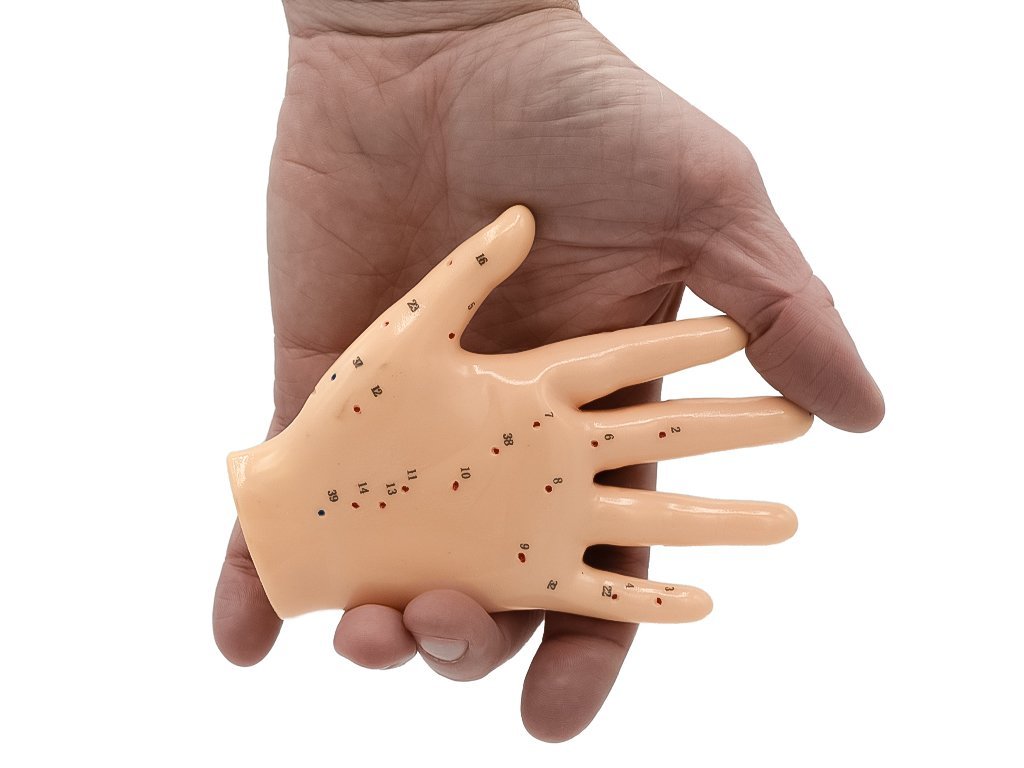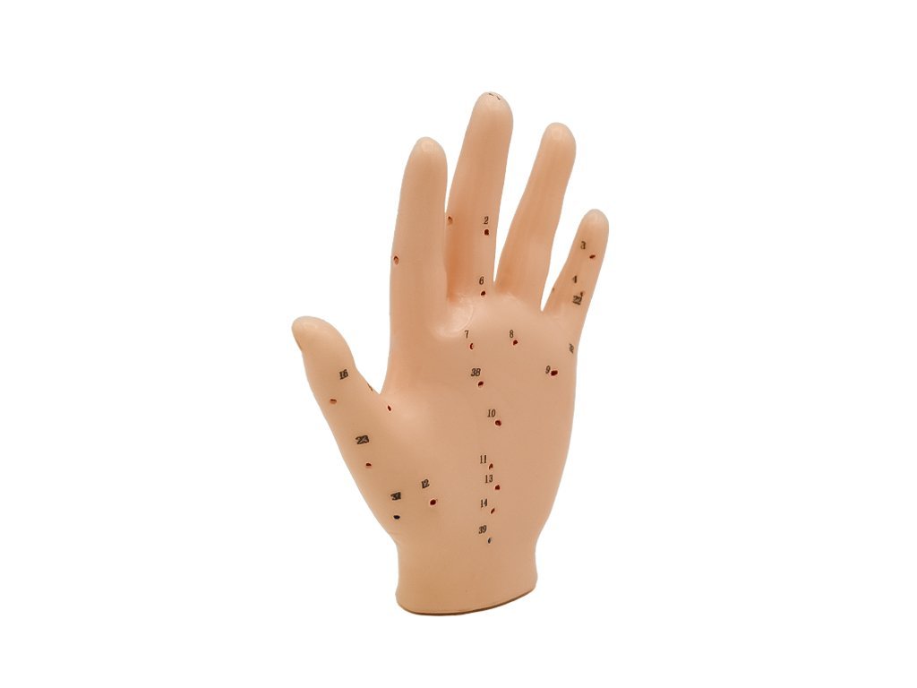 Hwato Akupunktúrny model ruky 13 cm je vyrobený z mäkkého umývateľného PVC plastu a ukazuje umiestnenie 20 akupunktúrnych bodov na chrbte ruky a 13 akupunktúrnych bodov na dlani označených čínskymi znakmi alebo číslicami. Súčasťou je anglická a čínska brožúra popisujúca body.