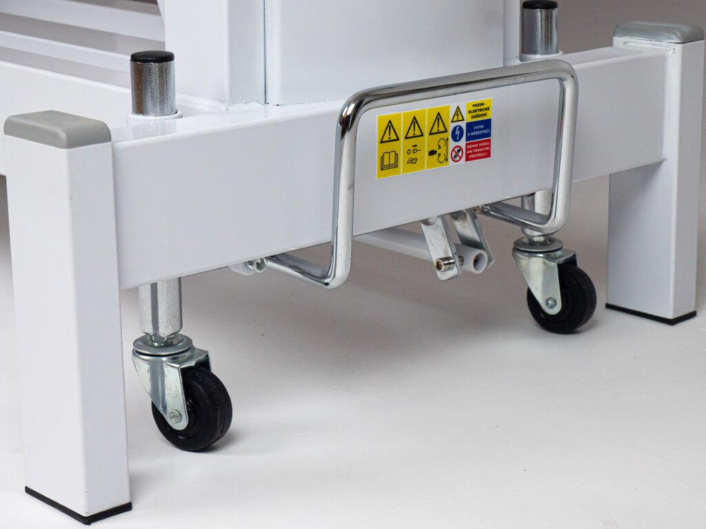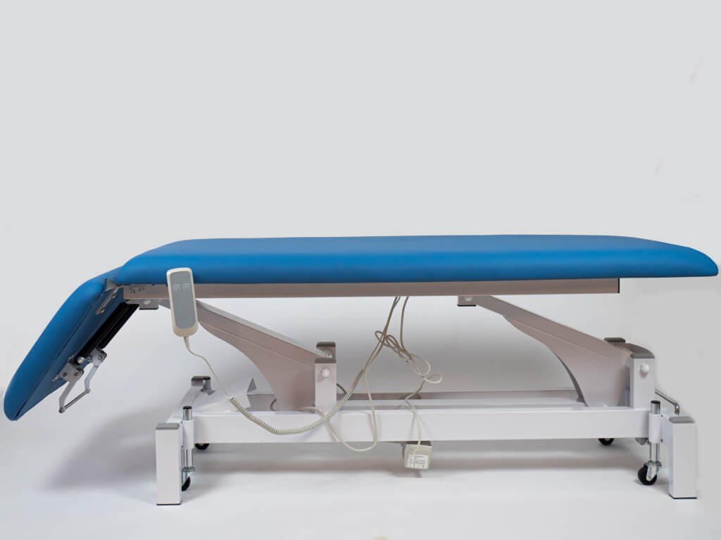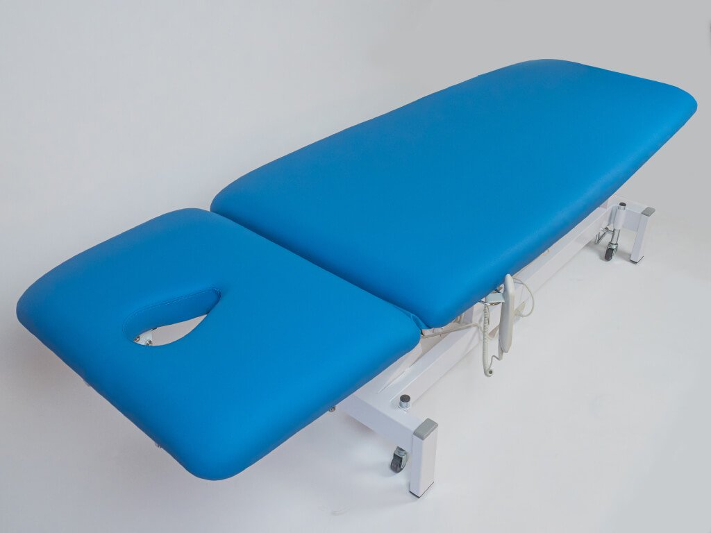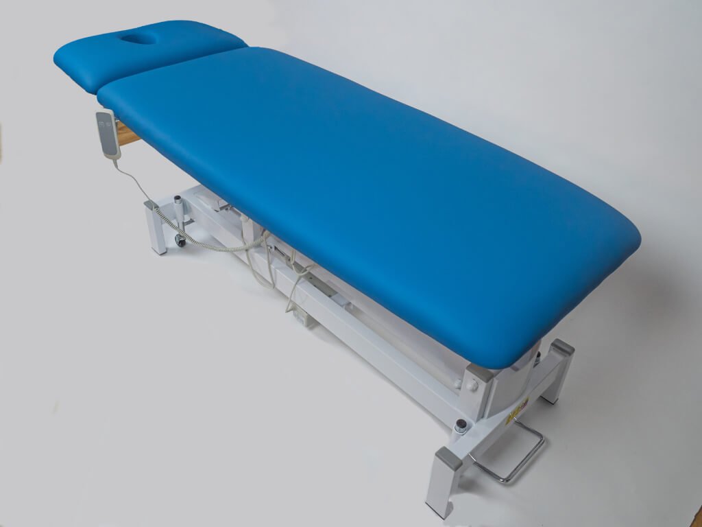 Kvalitné profesionálne lehátko so šírkou polstrovania 80 cm, ktoré využije k svojej práci každý terapeut či masér. Naše terapeutické lehátko s označením 802301 má veľmi príjemné koženkové polstrovanie. Výška sa nastavuje pomocou elektromotora v rozmedzí 46 - 88 cm. Nastavenie výšky terapeutického lehátka je prevádzané pohodlne pomocou ručného ovládača. V základnej cene lehátka sú tiež centrálne ovládané transportné kolieska. Hlavový diel má nastaviteľný sklon pomocou hydraulického piestu (+45 až -75°) a trojuholníkový tvarový otvor. Vďaka vyššej hmotnosti je toto lehátko veľmi stabilné.
