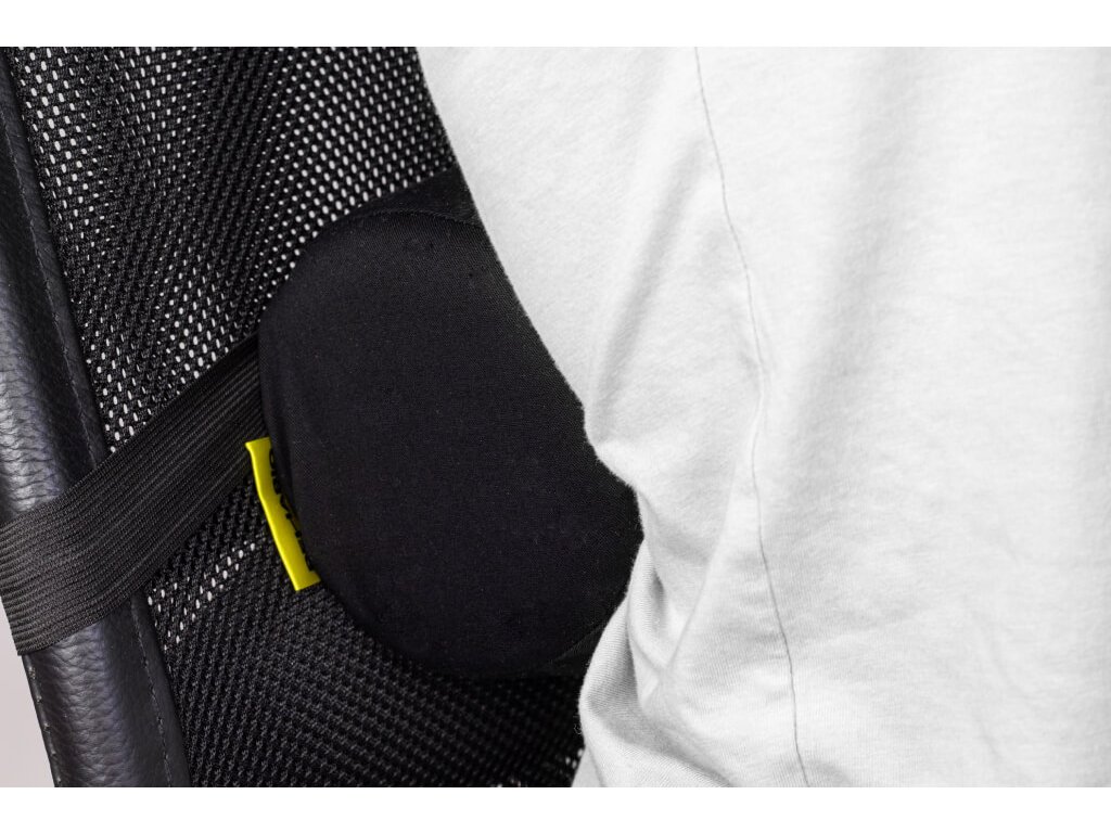 4. Pomaly sa zakloňte a oprite sa o operadlo tak, aby bedrová opierka udržiavala po celý čas sedu stále prehnutý chrbát v bedrovej oblasti.