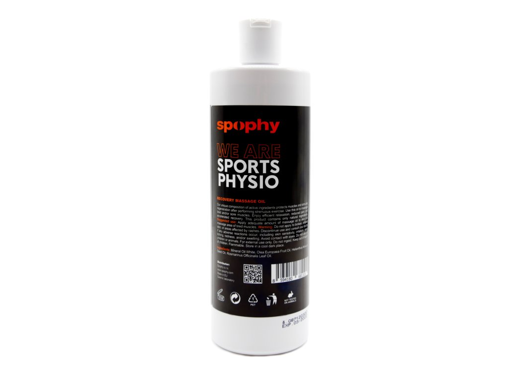 Užite si rýchlejšiu regeneráciu po intenzívnom tréningu. Spophy Recovery Massage Oil nesmie chýbať vo výbave žiadneho športového fyzioterapeuta či tímového maséra. Ľahký masážny olej vyvinutý v spolupráci s profesionálnymi športovcami a ich terapeutmi. Perfektná kĺzavosť a ideálna roztierateľnosť bola docielená kombináciou najkvalitnejšieho minerálneho, slnečnicového a olivového oleja. Preukázateľný efekt urýchľujúci regeneráciu svalov je zabezpečený iba zložkami prírodného pôvodu a masážny olej neobsahuje žiadne zakázané látky ani liečivá.