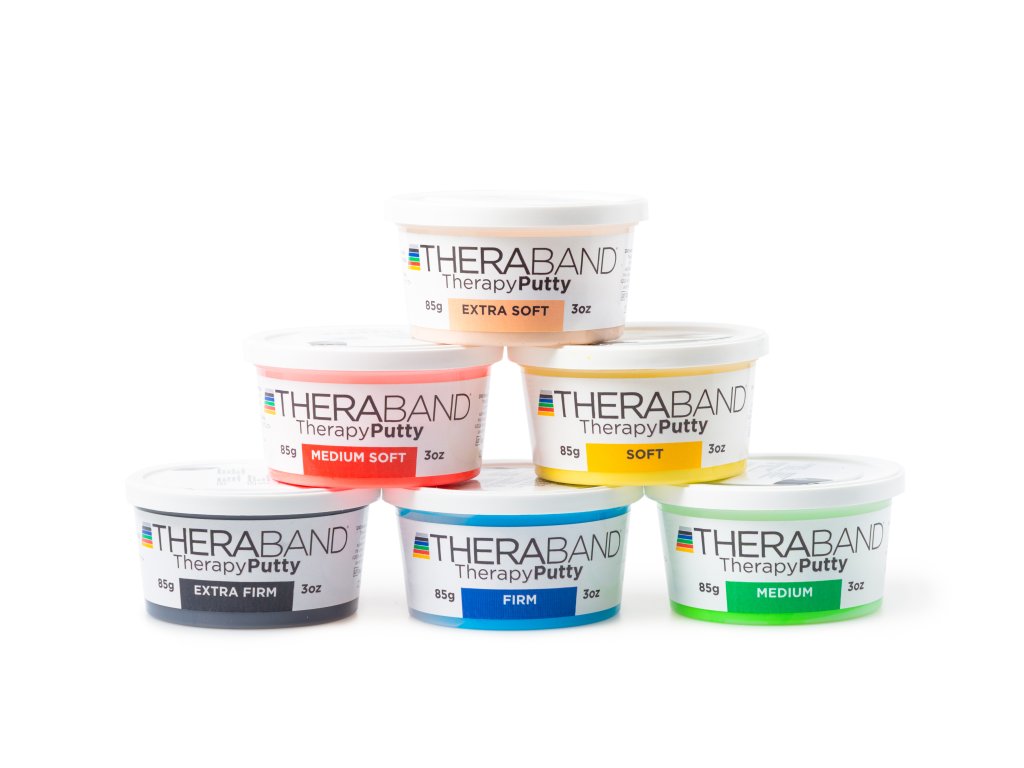 Thera-Band Therapy Putty, terapeutická hmota sa vyrába v 6 stupňoch tuhosti a je možné teda pohodlne použiť postupné zvyšovanie záťaže (tuhosti) pri cvičení.